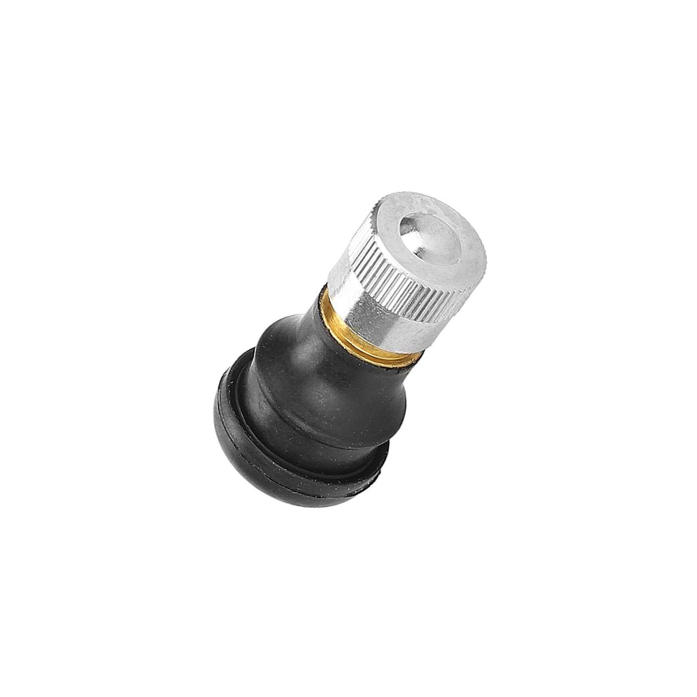 Válvula tubeless recta en aluminio/goma. Sella y mantiene la presión en llantas tubeless. Se vende por unidad.