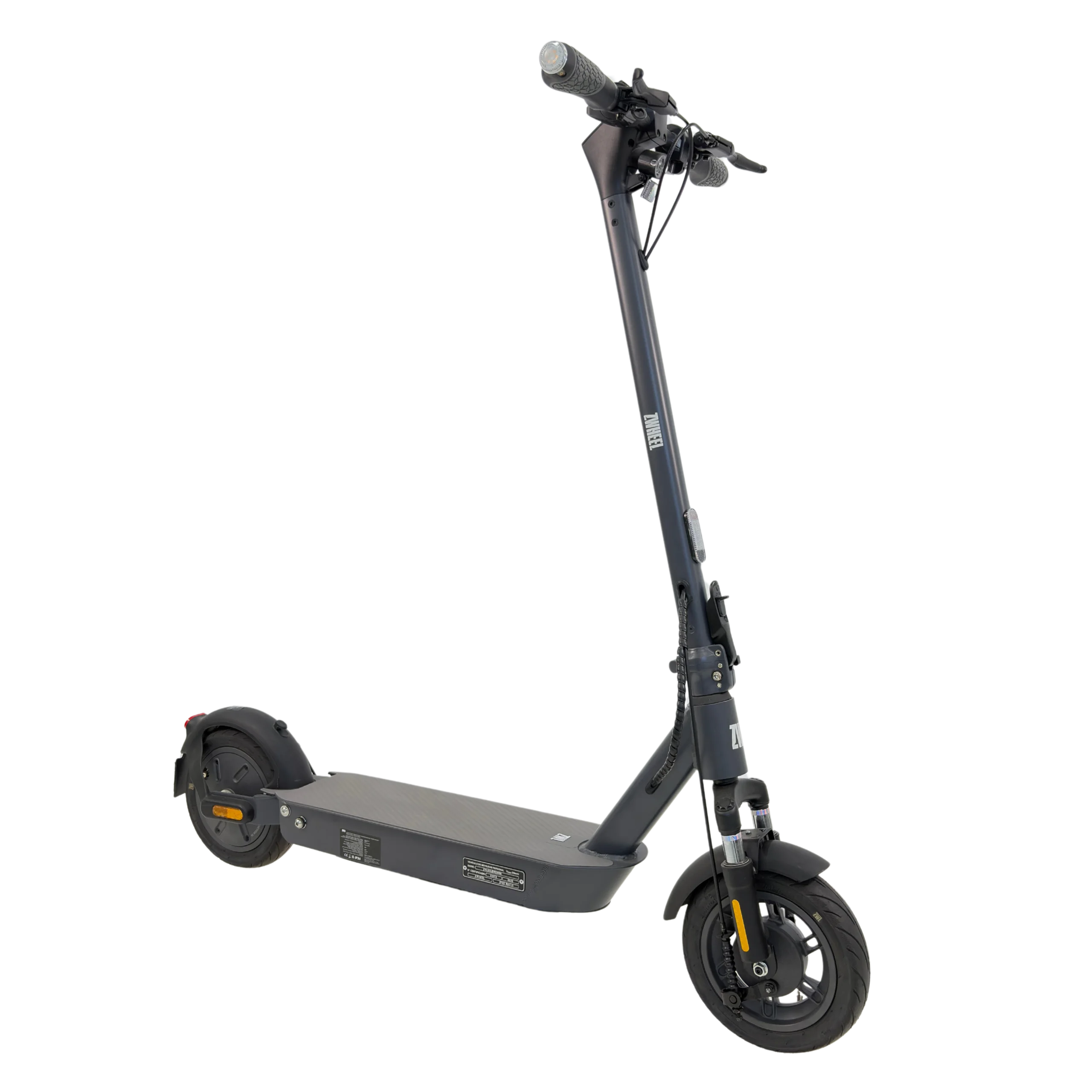 Patinete eléctrico certificado por la DGT con placa identificativa.